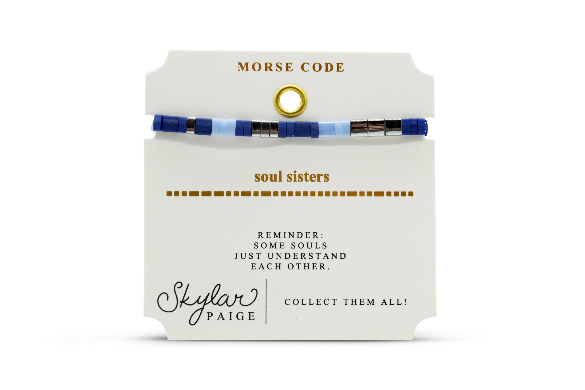 STRETCH BRACELETS IN THE “NOTE TO SELF” COLLECTION ARE MADE FROM PREMIUM QUALITY, JAPANESE GLASS MIYUKI® TILA BEADS. THE BRACELETS ARE METICULOUSLY ASSEMBLED WITH A MORSE CODE PATTERN, INSPIRATIONAL MESSAGING & STYLISH PACKAGING.