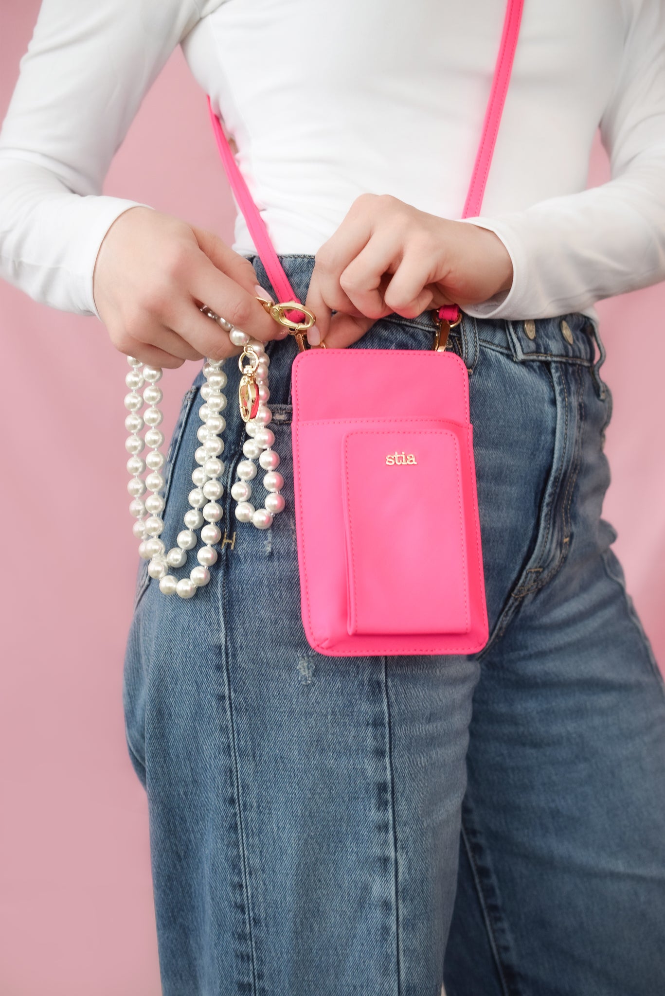 Add a bold twist to your phone or your Stia crossbody bag with this stunning interchangeable “All Dressed Up” strap. Includes a universal phone adaptor insert. This strap is the ultimate upgrade for those who adore timeless details and eye-catching accessories. It's hands-free fashion for your phone!