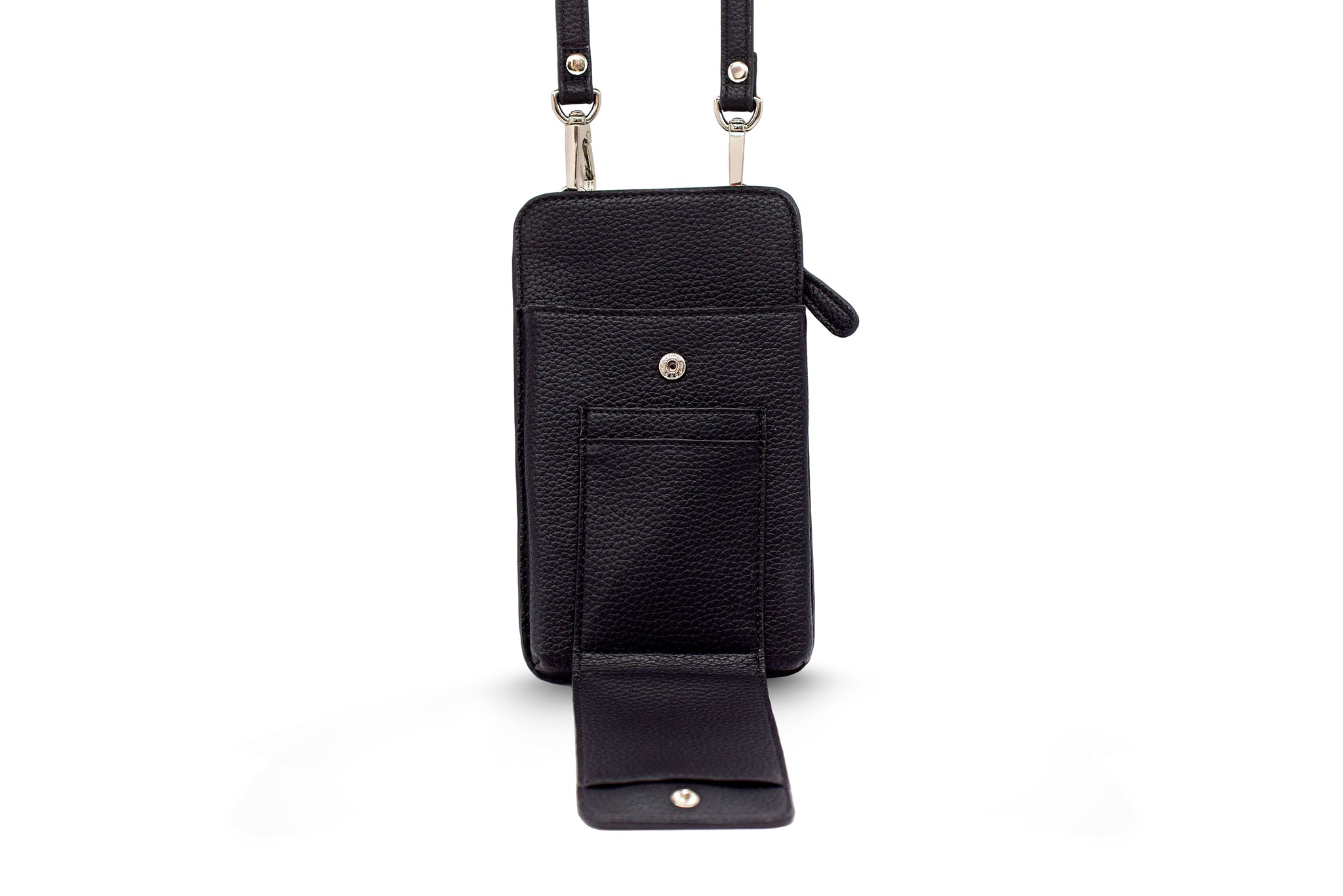 - Included with three card pockets and button enclosure